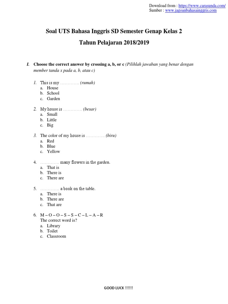 Soal Uts Bahasa Inggris Kelas 5 Sd Mi Semester 2 Sekolahdasar Net from 2.bp.blogspot.com Check spelling or type a new query. Soal uts bahasa inggris kelas 8 semester 2 pdf. We did not find results for: Maybe you would like to learn more about one of these?