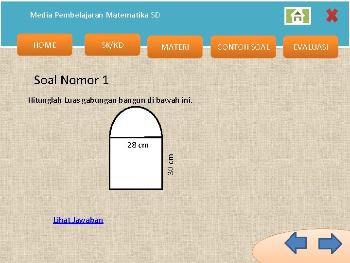 Mencari keliling dan luas gabungan dari persegi panjang dan setengah.